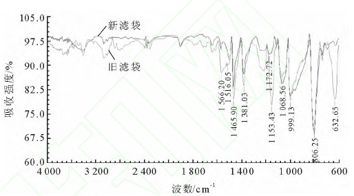 圖2新濾袋與舊濾袋迎塵面紅外光譜分析