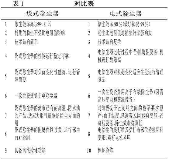 2、布袋除塵器和電除塵器運(yùn)行可靠性對(duì)比:
