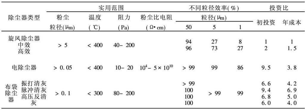 布袋除塵器的選用,_考慮到粉塵的分散度,粉塵比電阻、含塵氣體溫度、煙氣量、除塵效率、投資費(fèi)用等因素的影響。工業(yè)中常采用的除塵器是旋風(fēng)除塵器、布袋除塵器、電除塵器。其性能如下表所示:
