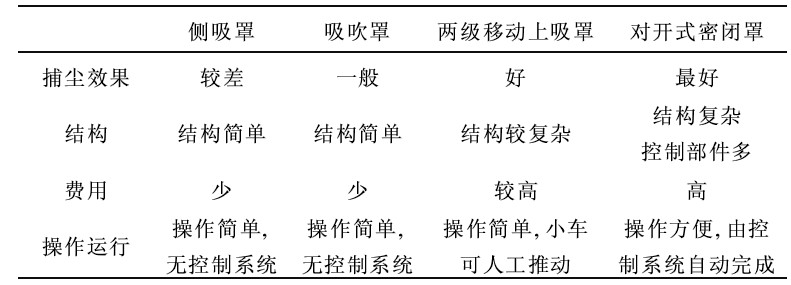 (3)對(duì)開(kāi)式密閉罩鋼材量大,控制系統(tǒng)復(fù)雜,投資費(fèi)用高,但捕塵效果_。在投資許可的條件下,加之,對(duì)環(huán)保有嚴(yán)格要求的場(chǎng)合,選用這種吸塵罩。經(jīng)估算對(duì)開(kāi)式密閉罩投資費(fèi)用不_過(guò)10萬(wàn)元,加上除塵器、風(fēng)管及其它控制系統(tǒng),總費(fèi)用可控制在預(yù)計(jì)費(fèi)用內(nèi)。
