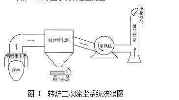轉(zhuǎn)爐二次除塵系統(tǒng)流程圖見(jiàn)圖 1 。