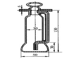 (2)采樣裝置及儀器重量法測量排氣中水分含量的裝置見圖1,其主要組成為頭部帶有顆粒物過濾器的加熱或保法國的氣體采樣管、U 形吸濕管(見圖2)或雪菲爾德濕管(見圖3)以及內裝氯化鈣或硅膠等吸濕劑。真空壓力表的_度應不低于4%,溫度計的_度應低于2.5%。測量范圍0-1.5m/min。抽氣泵的流量為2m/min 時,抽氣能力應克服煙道及采樣系統(tǒng)阻力。當流量計量裝置放在抽氣泵出口端時,抽氣泵應不漏所天平的感量應不大于1gk。