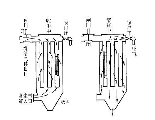 氣箱脈沖布袋除塵器一般采用外濾式除塵器濾袋,需要有內(nèi)側(cè)袋籠支撐,在頂部出口側(cè)要做成分室結(jié)構(gòu)形式。