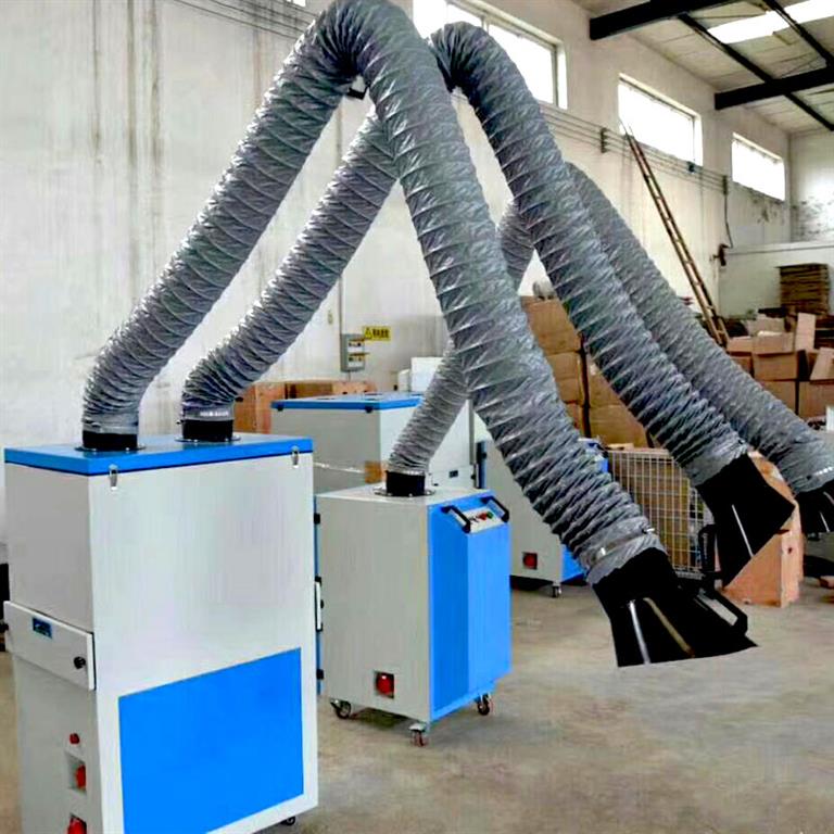 移動(dòng)式焊煙除塵器底部裝有萬(wàn)向腳輪,移動(dòng)操作方便,使用靈活,吸塵管可上下升降、360度轉(zhuǎn)動(dòng),能直接伸至污染源附近對(duì)煙塵廢氣、粉塵進(jìn)行有效地吸收處理。